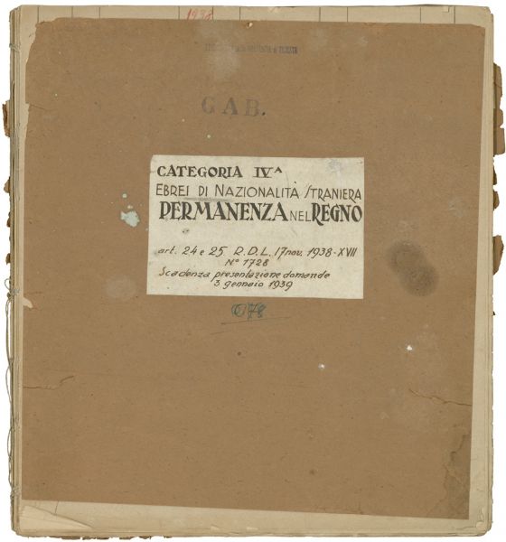 Elenco degli Ebrei di nazionalità straniera che fanno domanda di restare nel Regno d’Italia, ai sensi del regio decreto legge 17 novembre 1938, numero 1728, articoli 24 e 25