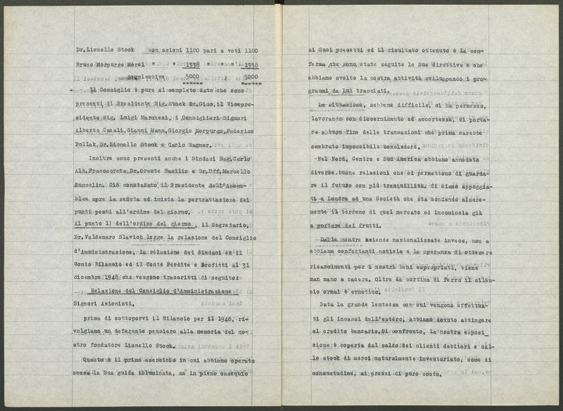 Verbale dell’assemblea generale ordinaria della “Stock Cognac Medicinal S.p.A.” in Trieste nella quale si commemora la morte di Lionello Stock e se ne rimpiange la figura Luogo e data: Trieste, 1948Collocazione: ASTS, Archivio Stock, b. 222