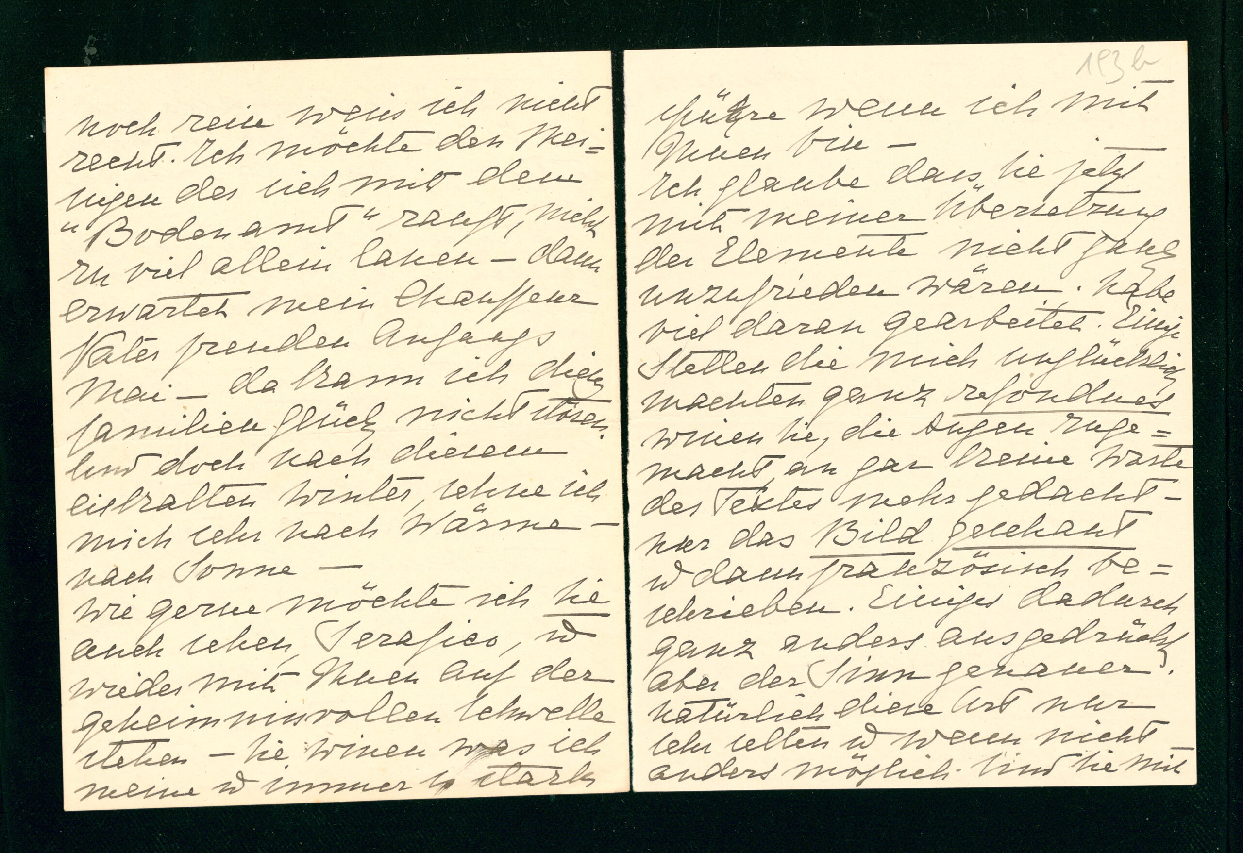 Ich glaube daß Sie jetzt mit meiner Übersetzung der Elemente nicht ganz unzufrieden wären; habe viel daran gearbeitet. Einige Stellen die mich unglücklich machten ganz refondues wissen Sie, die Augen zugemacht, an gar keine Worte des Textes mehr gedacht - nur das Bild geschaut und dann französisch beschrieben. Einiges dadurch ganz anders ausgedrückt aber der Sinn genauer. Natürlich diese Art nur sehr selten und wenn nicht anders möglich. Sind Sie mit der Übersetzung des Malte Laurids zufrieden? Sie schien mir sehr gut. Hofmansthal will daß ich La Princesse de Clèves deutsch übersetze - Das glaube ich wäre über meine Kräfte.